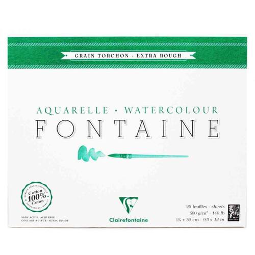 Bloco Aquarela Torchon 36X48Cm 300G Clairefontaine 25 Fls Papel para Aquarela Fontaine GRAIN TORCHON é um papel de textura com grãos maiores que a textura fina. Este tipo de textura permite conseguir efeitos de volume para técnicas à base de água. Clássico em sua composição o papel Fontaine é fabricado a mão artesanalmente com fibras de 100% algodão, seu formato permite obter pinceladas homogêneas e cores vibrantes e luminosas com um resultado espetacular. O papel permanece sempre com uma brancura impecável, esteja ele seco ou molhado. O papel Fontaine Clairefontaine é a escolha indicada para o artista de nível . Marca: Não Informado Ean: 3329680964318