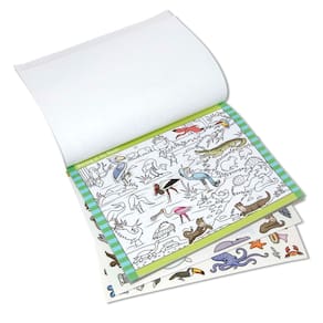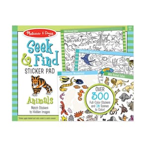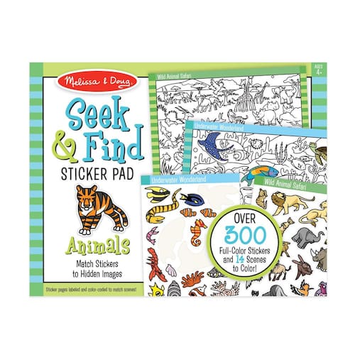 Melissa & Doug Bloco de adesivos Seek and Find Animals (mais de 300 adesivos, 14 cenas para colorir) - Certificado FSC - Bloco de adesivos de 21 páginas com cenas de animais para colorir e adesivos para combinar com objetos ocultos - Cenas detalhadas incluem safári, recife de coral, celeiro, fazenda, pântano, ártico, piscina de maré, dinossauros, copas das árvores da floresta tropical, sub-bosque da floresta tropical, oceano, floresta, lagoa, deserto - As páginas adesivas etiquetadas e codificadas por cores são fáceis de combinar com as cenas; uma maneira envolvente de incentivar a resolução de problemas, o desenvolvimento motor fino e a criatividade - É um ótimo presente para crianças de 4 a 7 anos, para brincadeiras práticas e sem tela; produto feito com materiais certificados pelo FSC que suportam silvicultura responsável; aplica-se apenas a novos inventários (FSC C156584)