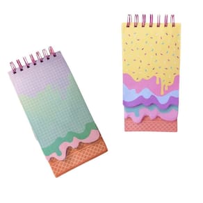 Detalhes do Produto: - Capa em Relevo 3D: Uma capa vibrante e detalhada que simula uma deliciosa sobremesa de sorvete, criando uma experiência tátil única. - Diversão e Funcionalidade: Além do design inovador, oferece amplo espaço para anotações, listas e desenhos.