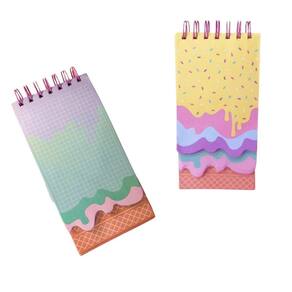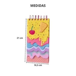 Detalhes do Produto: - Capa em Relevo 3D: Uma capa vibrante e detalhada que simula uma deliciosa sobremesa de sorvete, criando uma experiência tátil única. - Diversão e Funcionalidade: Além do design inovador, oferece amplo espaço para anotações, listas e desenhos.