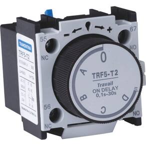 O Bloco de Contato Temporizado Tramontina é destinado para aplicações que necessitam de comando temporizado de contatores. Ele possui sistema pneumático com ajuste de tempo. E, ainda dispõe de dois contatos auxiliares integrados, 1NA e 1NF. Orientações Tempo ajustável: 0,1 segundo a 30 segundos.Contato auxiliar: 1NA + 1 NF Características Gerais EAN13 7891435934946 DUN14 17891435934943 NCM 8538.90.90 Peso Líquido 0,4790 kg. Peso Bruto 0,5290 kg. Metragem 0,000155 m³. Dimensões Embalagem (Compr. X Larg. X Alt.) 52x 46x 65 mm. Dimensões Produto (Compr. X Larg. X Alt.) 45x 50x 60 mm. Cor 1 A9A9A9A Hexa Cor 2 0000000 Hexa Observações Recomenda-se a instalação por pessoal capacitado, seguindo todas medidas de segurança em instalações elétricas. A sua instalação deve estar localizada em ambiente protegido, como quadros de distribuição ou painéis elétricos.