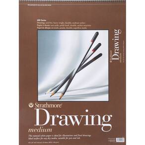 Strathmore Bloco de desenho série 400-8 400, 45,7 x 61 cm, marfim/creme, 24 folhas, médio - Para obras de arte finalizadas - mídia seca - Ótimo para lápis de grafite, lápis de cor, carvão, bastão de esboço, caneta e tinta, marcador, pastel macio, mídia mista, pastel a óleo - Este papel de desenho colorido creme é ideal para esboçar e a maioria dos trabalhos finalizados - Folhas encadernadas com fio microperfurado; superfície média - Pesado; livre de ácido; feito nos EUA - Ideal para ilustrações e desenhos finais - Inclui 24 folhas de papel - Sem ácido - Superfície média