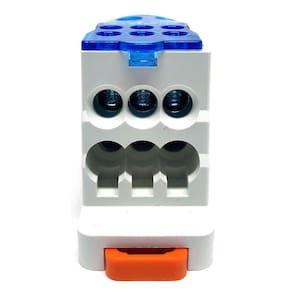 O Bloco Distribuição Modular 125A 690V Secção 10 35, 2.5 16Mm possui uma cor azul e branca, que o torna fácil de identificar em meio a outros componentes elétricos.