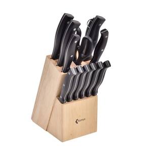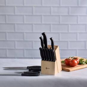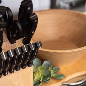 Bloco De Facas 14 Peças Aço Inox Kenya O Bloco de Facas da Kenya é perfeito para completar os utensílios da sua cozinha. Ele conta com design moderno, lâminas em aço inox e um suporte em bambu que promove praticidade e elegância para armazenar suas facas. Conjunto completo, atendendo diferentes necessidades. Cabo ergonômico, material de alta qualidade promovendo a melhor performance nos cortes e durabilidade.Especificações do Produto:- Lavar a mão- Não utilizar produtos abrasivos na lavagem- Bloco de facas robusto, poderá ser utilizado para complementar a decoração da cozinhaConteúdo da Embalagem:- 1 Faca do Chef com 20cm- 1 Faca de pão com 20cm- 1 Faca Santoku com 17cm- 1 Faca utilitária com 12cm- 1 Faca para descascar com 8cm- 6 Facas serrilhadas com 10cm- 1 Chaira (afiador) com 20cm- 1 Tesoura- 1 BlocoFicha Técnica:- Código: 4081660111- Marca: Kenya- Material: Bloco em bambu e 13 peças em aço inox e cabo de plástico- Peso: 2,36kg- Dimensões: 36,5cm x 12,5cm x 22,5cm (AxLxP)- Garantia: 3 Meses - Contra defeito de fabricação Texto Complemento - Altura - 36,5cm Largura - 12,5cm Profundidade - 22,5cm Peso - 2,36kg Sobre a Marca - A marca brasileira Kenya oferece produtos com ótima relação custo-benefício para os principais ambientes da casa, com seu portfólio dividido em Mesa, Vinho e Bar. Simplicidade e elegância são características fundamentais da marca, que traz em cada coleção de produtos para cozinha, banheiro, lavanderia, organização, entre outros, as novidades alinhadas com as últimas tendências do mercado internacional.
