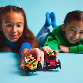 As crianças podem viajar para qualquer destino, as viagens ficam na fronteira da imaginação. Este divertido conjunto de corrida apresenta 2 carros de corrida de caixa de sabão e 2 minifiguras. As crianças podem colocar o chef na fatia de pizza escaldante contra o bombeiro no caminhão de bombeiros em brasa. Quem vencerá? Sente-se para uma ação de corrida urbana épica!