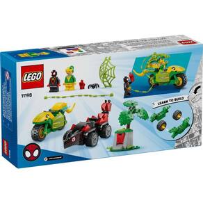 Inclui 2 minifiguras de super-heróis e 2 veículos dinossauros de empurrar: Miles Spin Morales em um carro de estegossauro e Electro em uma motocicleta de dilofossauro Um grande elemento de teia, um cristal escondido dentro de uma rocha, além de acessórios de paisagismo inspiram a dramatização criativa das crianças Dentro da caixa, cada bolsa contém tijolos e um grande tijolo inicial para um modelo e personagem rápidos de construir, para que a brincadeira comece rapidamente