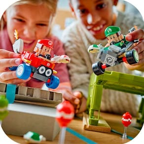Venha com a ação de estourar balões e correr com este conjunto de brinquedos Baby Mario vs. Baby Luigi e seus veículos de brinquedo Biddybuggy e Tri-Speeder. Cada carro montável pode lançar projéteis, e há 6 balões montáveis 3 vermelhos, 3 verdes para mirar. Quem derrubará seus balões primeiro? Detalhes: • O conjunto contém 321 peças, um desafio de construção inesquecível. • O conjunto possui 2 figuras colecionáveis de brinquedo do Bebê Mario e do Bebê Luigi, além de 6 balões para construir (3 vermelhos, 3 verdes) • Os brinquedos de carro para construir neste conjunto medem mais de 5 cm de altura, 10 cm de comprimento e 7 cm de largura. Informações: • Produto: Mario Kart - Baby Mario vs Baby Luigi • Marca: LEGO • Coleção: LEGO Super Mario • Tipo: Bloco de Montar • Categoria: Blocos de Montar e Cia • Tamanho (C): 35 cm comprimento • Conteúdo: 321 peças • Recomendação: Para crianças a partir 8 anos de idade Especificações: • Referência: 72034 • Código de Barras: 673419405652 • Embalagem (C x A x L): 35 x 19 x 6,5 • Embalagem (Peso): 0,383 • Material / Composição Plástico • Registro: 005 830/2021 • Certificado: Órgãos Autorizados - OCP´S (Organismos de Certificação de Produtos) Benefícios de Brincar: - Eleva a autoestima - Exercita a memória - Estimula o raciocínio - Exercita o imaginário - Desenvolve a criatividade - Desenvolve percepção visual - Desperta a atenção e curiosidade - Desenvolvimento neuropsicológico - Estimula habilidades motoras básicas - Incentiva a comunicação e linguagem - Desenvolve aspectos emocionais e afetivo - Estimula o reconhecimento de formas e cores Aviso: • As imagens são meramente ilustrativas • Os pesos, tamanhos e medidas são aproximados • As cores e estampas dos produtos podem ter variações • As informações são de responsabilidade do fabricante ou fornecedor
