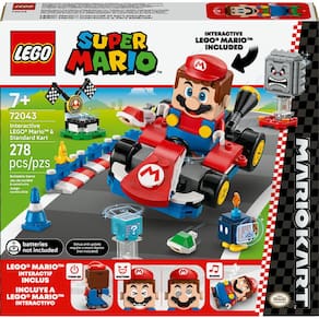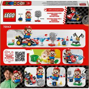 As crianças podem criar suas próprias pistas e se juntar ao LEGO Mario em seu Kart padrão para corridas interativas com este conjunto Mario Kart construído com peças (72043) Um presente LEGO Super Mario fantástico para meninos, meninas e gamers maiores de 7 anos, o conjunto de construção inclui uma figura interativa do LEGO Mario e um Kart padrão com ação de drift e disparo de cascos para corridas e brincadeiras divertidas Há uma área de partida, barreiras de pista conectáveis, cones de trânsito e pódio para criar uma pista de corrida