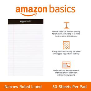 Bloco de notas de escrita com linhas estreitas Amazon Basics, 5 polegadas x 8 polegadas, branco, 12 unidades (pacote com 12 páginas)