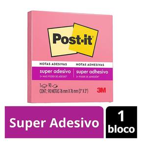 Bloco de notas super adesivas Post it Rosa Tropical 76x76mm 90 folhas - 3M