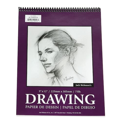 Jack Richeson Bloco de papel de desenho de 30 x 45 cm, espiral de 30 folhas