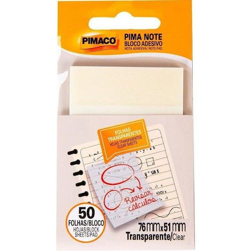 Pima note transparente. Muito mais facil para marcar trechos importantes. 76mmx51mm. 50folhas. Transparente . Facil de reposicionar . Cabe no bolso e estojos escolares. Embalagem: unidade. Referência: 970831