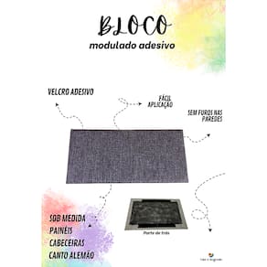 O bloco modulado adesivo permite uma infinidade de composições, modelos e formas. Crie e escolha quantos blocos desejar por altura e também quantos blocos será por largura. Assim estará desenvolvendo sua cabeceira, painel ou canto alemão exclusivo.