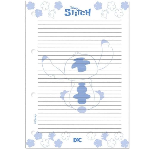 Bloco Fichário Universitário 96 Folhas Stitch - Dac Com o Refil de folhas para fichário Stitch da DAC, seus estudos ganham um toque de magia e organização! Perfeito para repor as folhas do seu fichario e continuar anotando tudo o que precisa. Com 96 folhas pautadas, decoradas com o extraterrestre mais amado do mundo, o Stitch, esse refil é ideal para o dia a dia na escola ou faculdade. Aposte em um material de qualidade e divertido para te acompanhar em todas as suas aventuras! Código: 105111 Dimensões aprox. do produto em cm: 20x27,5cm Peso liq. Aproximado do produto na embalagem: 290g Referência do Modelo: 4670RE Conteúdo da Embalagem: 01 Bloco de Folhas de Fichário Contendo 96 Folhas Composição/material: Papel Garantia: 90 dias contra defeitos de fabricação pelo fabricante. Imagens meramente ilustrativas. As cores e tonalidades podem variar. Personagens - Stitch Uso - Escolar