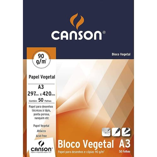 o bloco vegetal canson tem 90 g/m² e é ideal para estudos, gráficos, desenhos geométricos e projetos. sugestão de uso: desenhos técnicos a lápis, nanquim, canetas porosas, penas tubulares e marcadores.