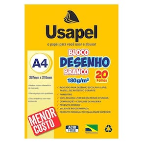 O Bloco de Desenho A4 é o produto mais icônico da marca Usapel, sendo frequentemente utilizado nas escolas e cursos livres de Artes. Este papel é especialmente indicado para desenhos à lápis de cor, giz de cera e grafite, garantindo uma ótima aderência e vivacidade das cores.