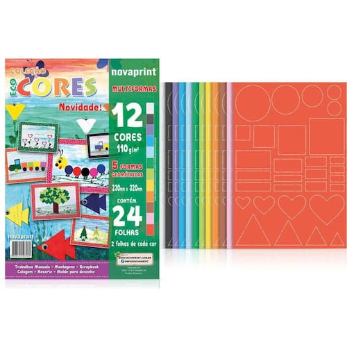 Bloco Para Educação Artística Multiformas 110G 12 Cores 24F. O ecocores multiformas se destaca pela quantidade de cores e praticidade na hora da criança trabalhar em atividades com formas geométricas. Desenvolvido para o público infantil, o bloco oferece 5 das principais formas geométricas utilizadas nas atividades de sala, facilmente destacáveis e em diversos tamanhos para montagens, colagens e dobraduras, otimizando o trabalho das professoras em sala de aula e proporcionando trabalhos artísticos de maior qualidade. Com 24 folhas duas folhas de cada cor e formato especial de 235mm x 325mm, tamanho diferenciado que favorece a aplicação artística, o bloco possui espessura de 110g/m, ideal para manuseio infantil e mantendo a firmeza no papel para atividades escolares. Ean: 7898541107295