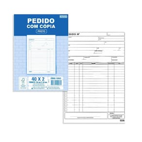 O pedido com 2 vias 40x2 para anotação de pedidos e encomendas em diversos estabelecimentos afins de transações comerciais. Possui 2 vias sendo a primeira via pautada em azul e a segunda via sem pauta. Pacote com 20 unidades. Detalhes:fabricante: são domingosformato: 104 mm x 143 mmfolhas internas: papel offset gramatura: 56 g/mquantidade de folhas: contém 40 folhas pautadas e 40 folhas sem pauta.Quantidade de vias: 2 vias br - contém 20 unidadesbr - 80 folhas no total -imagens meramente ilustrativas br atenção: a cor do produto pode variar de acordo com o monitoratenção: o fabricante pode alterar embalagem ou a cor de alguma parte do produto sem aviso prévio Marca: Sao Domingos - Impressos Ean: 17891321100438