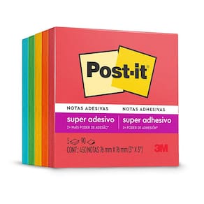 Suas folhas são reposicionáveis, ou seja, possuem Super Adesivo Post-it, que permite que sejam retirados e recolocados, sem danificar papéis ou outras superfícies, sem deixar resíduos do adesivo e sem perder a eficiência na fixação. Sua embalagem é transparente e permite que você visualize a cor real do produto, além de protegê-lo, fazendo com que chegue sem nenhuma sujeira ou mancha em suas mãos. Tenha os blocos de notas adesivas Post-it sempre à mão em seu escritório ou em casa, dentro de seu caderno, da bolsa, próximo ao telefone, cabeceira da cama ou onde mais quiser.