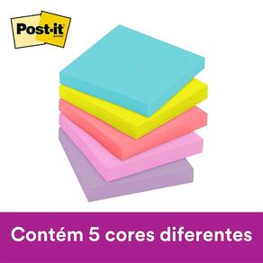 Nova coleção dos famosos blocos de notas adesivas Post-it em packs com mais variedades de cores. Suas ideias e sonhos só começam a tomar forma quando sua caneta encontra o papel. Porque quando você coloca suas ideias no papel, faz delas um pouco mais reais. Notas Post-it são as melhores parceiras neste ponto de conexão. É a transformação de seus pensamentos e os murais coloridos de Notas Post-it que iluminam as ideias de todos. Agora com ainda mais cores para escolher, suas ideias e Post-it são melhores juntos. Ideal para anotar compromissos, tarefas, recados e tudo mais que você precisar. Cada pack possui 5 blocos com 90 folhas cada nas cores "Azul Aqua, Verde Neon, Rosa Poppy, Pink Neon, Lilás". Suas folhas são reposicionáveis, ou seja, possuem Super Adesivo Post-it, que permite que sejam retirados e recolocados, sem danificar papéis ou outras superfícies, sem deixar resíduos do adesivo e sem perder a eficiência na fixação. Sua embalagem é transparente e permite que você visualize a cor real do produto, além de protegê-lo, fazendo com que chegue sem nenhuma sujeira ou mancha em suas mãos. Tenha os blocos de notas adesivas Post-it sempre à mão em seu escritório ou em casa, dentro de seu caderno, da bolsa, próximo ao telefone, cabeceira da cama ou onde mais quiser.