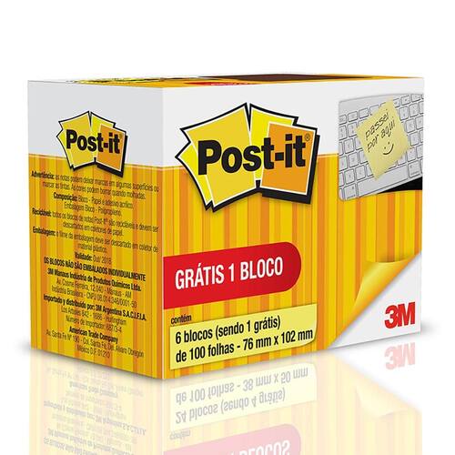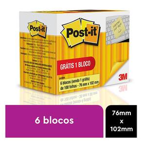 Bloco de notas adesivas Post it amarelo 76x102mm 100 folhas Leve 6 Pague 5 - 3M