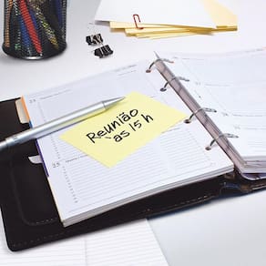 O Bloco Adesivo Amarelo Post it foi inventado por um pesquisador da 3M em 1980 e, desde então, conquistou o mundo! Ideal para anotar compromissos, tarefas, recados e tudo mais que você precisar. Suas folhas são reposicionáveis, ou seja, possuem adesivo de qualidade 3M, que permite que sejam retirados e recolocados, sem danificar papéis ou outras superfícies, sem deixar resíduos do adesivo e sem perder a eficiência na fixação. Sua embalagem é transparente e permite que você visualize a cor real do produto, além de protegê-lo, fazendo com que chegue sem nenhuma sujeira ou mancha em suas mãos.