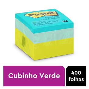 Bloco de notas adesivas Post it cubo verde 47,6x47,6mm 400 folhas - 3M