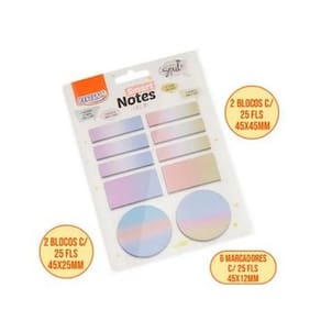 Bloco de Notas Adesivo com 4 Blocos de 25 Folhas e 6 Marcadores com 25 Folhas Degradê - BRW - BA0602