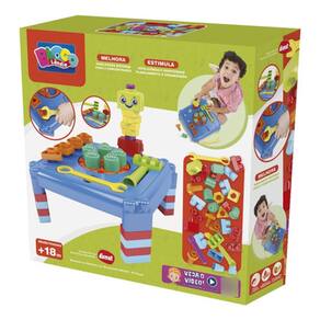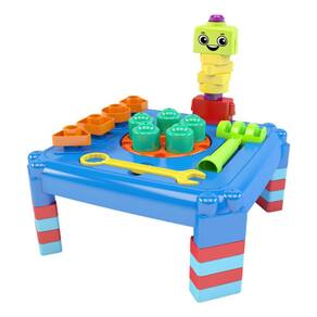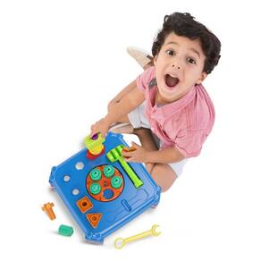 A Bancada do Mecânico da Blocolândia, da Dismat, é fabricada em plástico de alta qualidade para garantir durabilidade e resistência durante seu uso. É em formato de mesinha, na parte de cima, conta com pecinhas que imitam ferramentas e tem cores vivas e vibrantes, que chamarão a atenção do seu bebê!