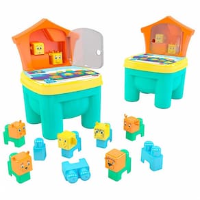 Brinkadeira bichos da blocolândia contém 17 peças com mais adesivos para montar varias formas de bichos diferentes , e também é uma cadeirinha para criança sentar e tem a encosto que encaixa para retirar e guardar as peças muito divertido.