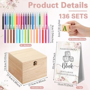 Este kit de blocos de chá de bebê oferece uma alternativa significativa aos presentes tradicionais de chá de bebê. Amigos e familiares podem decorar um bloco para o bebê com mensagens pessoais, criando lembranças sinceras que os pais vão adorar. Este presente atencioso combina sentimento, tornando-o um símbolo duradouro de amor.