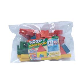Composto por: 40 blocos de construção em madeira pintados com tintas atóxicas embalados em saco plástico.