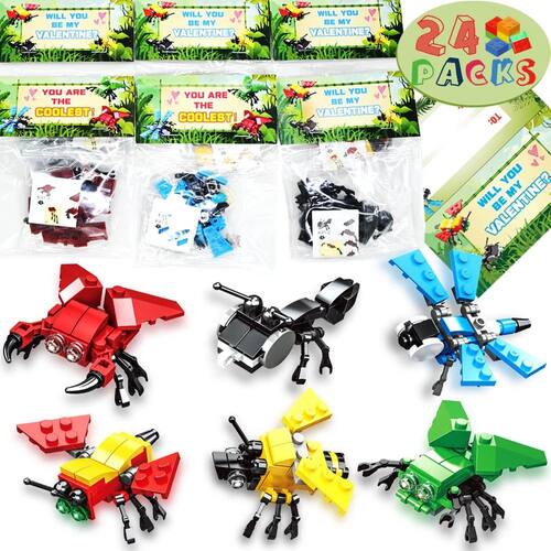 Cartões de Dia dos Namorados para crianças, 24 pacotes de blocos de construção de insetos do Dia dos Namorados, conjunto de cartões comemorativos de presente para troca de sala de aula, brinquedinhos de festa de São Valentim para meninos e meninas — pacote super econômico: nosso conjunto de blocos de construção para insetos inclui 24 pacotes de blocos de construção, 6 blocos de construção para insetos diferentes, abelha, libélula, besouro, inseto, borboleta e formiga. - Qualidade premium de segurança: os blocos de construção de insetos são feitos de material plástico ABS ambiental de alta qualidade, 100% seguro e não tóxico. Mas contém peças pequenas, tenha cuidado para evitar a deglutição em crianças menores de 3 anos. - Fácil de montar: o brinquedo de blocos de construção de insetos contém instruções gráficas passo a passo, mostrando claramente cada etapa e as peças de blocos de que você precisa. As crianças podem facilmente montar sozinhas. - Brinquedos educativos STEM: todos os 6 estilos de blocos de construção de insetos vêm em cores diferentes, o que pode aumentar a cognição das formas de cores de seus filhos. Também pode melhorar as habilidades de comunicação, resolução de problemas, criatividade, trabalho em equipe, iniciativa e habilidades de investigação. - Presentes para lembrancinhas: nossos blocos de construção para insetos são o melhor presente para crianças. As crianças definitivamente vão adorar isso! O conjunto de cartões infantis de Dia dos Namorados é perfeito para meninos e meninas, lembrancinhas de dia dos namorados, eventos de classe, troca de presentes, prêmios em sala de aula, bilhetes de amor e qualquer ocasião. É ótimo para crianças, colegas de classe e famílias trocarem e darem presentes no Dia dos Namorados