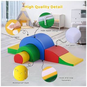 Escorregador Dobrável & Diversão Garantida: O design único dos blocos de escorregador dobráveis vai garantir mais diversão para as crianças! Este brinquedo de escalada para bebês foi desenvolvido para aprimorar as habilidades cognitivas dos pequenos enquanto brincam. As crianças podem subir, rastejar e rolar nos blocos para desenvolver habilidades motoras e de aventura. As cores brilhantes estimulam o interesse das crianças em brincar.