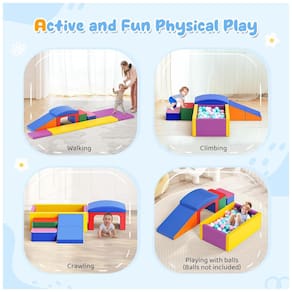 "Brinquedos de Escalada para Bebês para Interior e Exterior" - Nosso conjunto de escalada de espuma é de alta qualidade e versátil, sendo leve, permitindo que o bebê mova facilmente. Por ser impermeável e fácil de limpar, pode ser utilizado ao ar livre, perfeito para centros de educação infantil, casas e escolas.