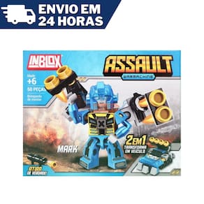 Bloco de Montar Inblox Assault Warmachine 2 em 1, que transforma em veículo ou em robô que atira de verdade, com isso o brinquedo fica mais realista e divertido.