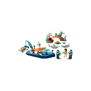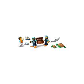 Infinitas aventuras imaginativas aguardam com este conjunto LEGO® City Barco de Mergulho Explorador (60377) para maiores de 5 anos O barco inflável de brinquedo contém vários recursos realistas, incluindo um guincho funcional O conjunto também contém um minisubmarino, cenário de recife de corais e um baú de tesouro Há 3 minifiguras de exploradores e as figuras de uma arraia, tubarão-martelo, caranguejo, 2 peixes e 2 tartarugas, além de muitos acessórios para inspirar histórias