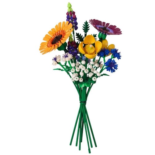 Com o blocos de montar buquê de flores silvestres, você pode criar arranjos incríveis e cheios de cor. São 939 peças que permitem montar flores detalhadas e personalizar como quiser - ideal para quem ama natureza, decoração e desafios criativos