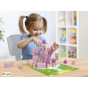 Castelo das Fadas é um brinquedo para soltar a imaginação e montar um mundo encantado Elaborado a partir de bloquinhos em madeira de MDF com peças de plástico para as torres e telhados, é composto por cartela/base decorada 29x41cm em papel cartonado e cartela de adesivos para decoração dos bloquinhos. Além de ser uma alternativa ecológica, é um brinquedo excelente para a criança ampliar os horizontes da imaginação, desenvolver habilidades e a capacidade motora fina. Com as peças podem-se montar diversas configurações de cenário, dando à criança maior liberdade para se divertir, criar e brincar.