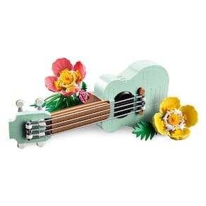 As crianças podem construir, brincar e exibir 3 modelos com tema de praia no conjunto LEGO® Creator Tropical Ukulele (31156) 3 em 1 Uma ótima ideia de presente para meninas e meninos a partir de 8 anos, apresenta um ukulele em um suporte de praia com 2 flores coloridas e grama O instrumento de brinquedo pode ser retirado do suporte e possui 4 cordas de plástico que vibram ao serem dedilhadas