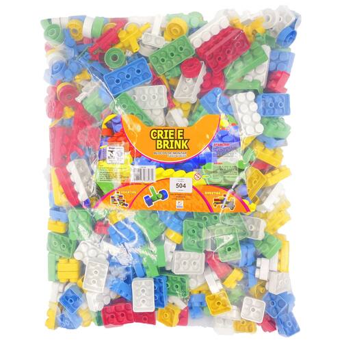 Modelo: Crie e Brink Material: Plástico atóxico Dimensões do Saco (504 peças): 12 cm (C) x 33 cm (A) x 43 cm (L) Dimensões das Peças: