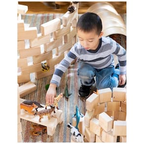 As peças seguem proporções padrão de unit block, permitindo combinações estáveis e progressivas que apoiam o desenvolvimento de pensamento espacial, conceitos iniciais de engenharia, resolução de problemas e colaboração em grupo. O conjunto pode ser utilizado isoladamente ou como complemento de outras coleções de blocos, servindo como base para brincadeiras abertas, cenários de faz de conta e projetos orientados em contexto escolar.?