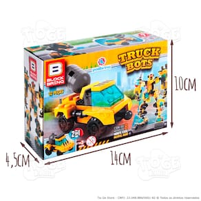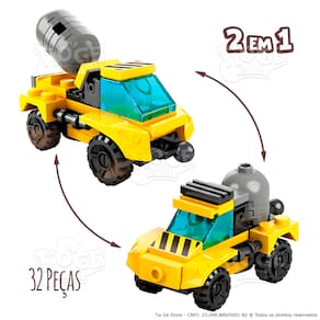 Itens da Embalagem: - 1 Caixa Blocos de Montar e Desmontar (Nº 7) Caminhão Betoneira 2 em 1 Robô Transformers Truck Bots Block Brinq 32 Peças.
