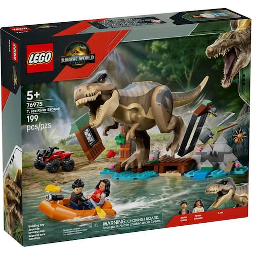 O 76975 Trex River Escape é um set compacto e cheio de ação — ideal para crianças e fãs de dinossauros que buscam interação e encenação O Trex moldado é o grande destaque, acompanhado de recursos de destruição e lançamento que estimulam a criatividade Apesar do preço, o valor agregado do dinossauro exclusivo e as possibilidades de brincadeira fazem dele uma opção bacana para quem curte a linha Jurassic World
