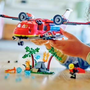 Aqui está um impressionante brinquedo de bombeiro para crianças a partir de 6 anos – o Avião de Resgate de Incêndios LEGO City (60413) completo com recursos realistas, incluindo uma função de gota d'água e 2 lançadores de elementos de água. A aeronave bimotora também tem uma porta de carga traseira que abre, além de uma cabine dupla, e inclui minifiguras de piloto, operador de extintor e bombeiro a jato, além de uma cena de incêndio florestal para brincadeiras cheias de ação.