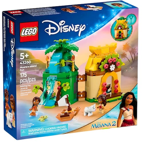 Descrição do produto : Aventuras fantásticas aguardam os fãs de Moana da Disney com 5 anos ou mais neste kit de brinquedo de construção de fantasia LEGO | Disney Moana's Island Fun (43260). Apresentando um modelo de dois lados inspirado no filme Moana 2 da Disney, este conjunto de micromundo montável é um conjunto pequeno com um grande mundo dentro. A ilha tem um escorregador de cachoeira com uma entrada escondida e a casa tem quartos para as figuras de microbonecas LEGO | Disney da Moana e da irmãzinha Simea, além de espaço para Pua. Há um pequeno barco e envolventes iniciadores de história e a ilha pode ser trancada com a chave, tornando-a perfeita para brincadeiras portáteis em qualquer lugar. : Detalhes técnicos : Marca: Lego : Referência: 43260 : Idade recomendada: 5 : Quantidade de peças: 175 : Possui Luzes: Não : Possui Sons: Não : Dimensões aproximadas da embalagem: 20 x 18 x 6 cm (A x L x C) : Ean: 673419403986 :