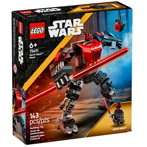 Descrição do produto : " Deixe as crianças explorarem o lado sombrio da Força no universo LEGO® Star Wars ™ enquanto brincam com o brinquedo de construção Robô Darth Maul para meninos, meninas e fãs a partir de 6 anos (75411). Este robô de construção rápida e articulado foi projetado para se parecer com Darth Maul como ele apareceu em Star Wars : The Clone Wars™, nas batalhas para dominar Mandalore. Ele tem um cockpit que abre para a minifigura de Darth Maul LEGO Star Wars , um clipe para seu sabre de luz vermelho™ de lâmina dupla e mãos que seguram um grande sabre de luz vermelho™ de lâmina dupla do tamanho de um robô. Um dróide sonda LEGO Star Wars que se conecta à parte traseira do robô aumenta as possibilidades de brincadeira de faz de conta. Uma ótima ideia de presente para crianças e amantes da fantasia, o Robô Darth Maul faz parte de uma série de conjuntos de robôs LEGO Star Wars (cada um vendido separadamente). Contém 143 peças. : "