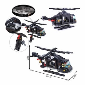 Blocos De Montar - Polícia - Helicóptero De Combate - 219 Pcs - Multikids BLOCOS DE MONTAR - POLÍCIA - HELICÓPTERO DE COMBATE - 219 PCS - MULTIKIDS: Os blocos de montar da Multikids são feitos no mesmo estilo dos famosos blocos de encaixe Lego. Monte diferentes cenários e seja um defensor da lei de verdade. São 219 peças para montar um incrível Helicóptero de Combate. As hélices giram de verdade para deixar o helicóptero mais parecido com a realidade. A cabeça e os pulsos dos bonecos podem ser girados 15 graus, ao mesmo tempo que a cintura pode ser girada 360 graus. Esta série apresenta o mundo da Polícia e de uma forma lúdica e permite às crianças e adultos apaixonados pelo universo dos encaixes divertirem-se de uma forma pedagógica.INFORMAÇÕES- Produto: Blocos de Montar Helicóptero de Combate- Marca: Multikids - Linha: Cubic Polícia- Tipo: Conjunto de Blocos de Encaixe - Número de Peças: 219- Dimensões (C x A x L): 24 x 12 x 21 cm- Idade recomendada: para crianças a partir de 6 anos de idadeESPECIFICAÇÕES: - Referência: BR1197- Modelo: M38-B1800- Embalagem (C x A x L): 28,8 x 23,8 x 5,5 cm- Peso (Kg): 0.400- Composição / Material: Plástico ABS- OBS: compatível com outras marcas- Registro: CE-BRI/IQB - 00706-18 - NM 300/2002BENEFÍCIOS:- Eleva a autoestima- Exercita o imaginário- Desenvolve a criatividade- Desenvolvimento neuropsicológico- Estimula habilidades motoras básicas- Incentiva a comunicação e linguagem- Desenvolve aspectos emocionais e afetivosAVISO: - As imagens são meramente ilustrativas- Os pesos e medidas são aproximados- As cores e estampas dos produtos podem ter variações- As informações são de responsabilidade do fabricante ou fornecedorATENÇÃO: - Comprar Blocos de Montar - Helicóptero de Polícia - 219 peças - Multikids é fácil- Condições de pagamento facilitadas- Entrega para todo o Brasil- Oferta válida por tempo limitado ou enquanto durarem os estoques