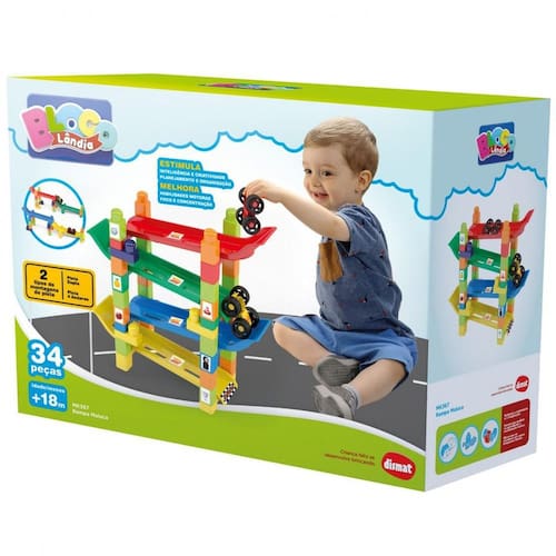 Com os Blocos de Montar Rampa Maluca da Dismat, a diversão está garantida para crianças a partir de 18 meses. Essa incrível pista de corrida vai proporcionar momentos de muita emoção e competição entre os pequenos pilotos.