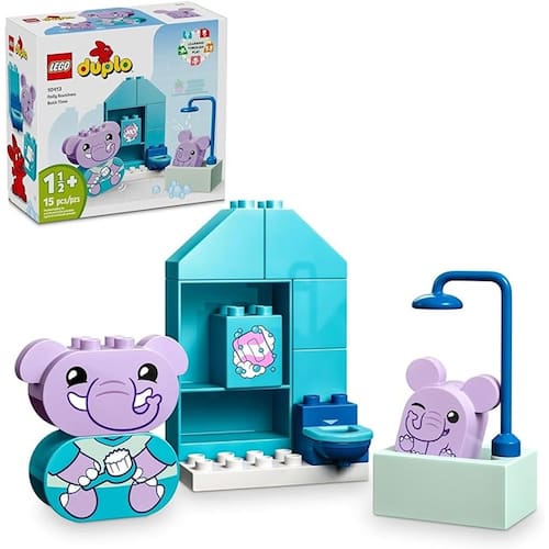 Ajude os bebés a explorarem os seus sentimentos com este brinquedo de construir divertido Ajuda a iniciar as conversas sobre o bacio e os banhos diários Inclui uma banheira, chuveiro e sanita, além de 2 figuras amigáveis de elefantes – o progenitor e a sua cria O rosto do elefante bebé inclui 2 expressões diferentes para que as crianças expressem o que sentem com cada atividade!